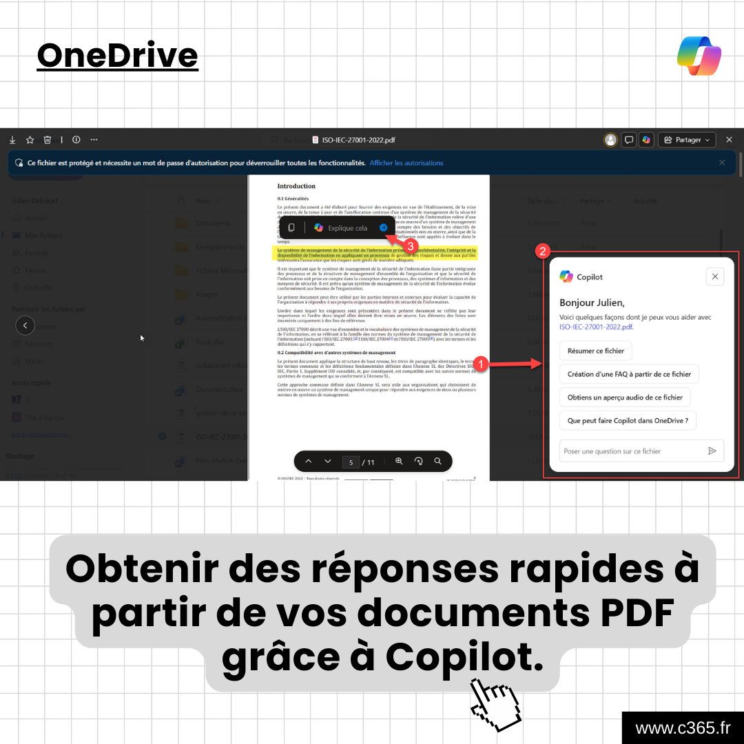 Obtenir des réponses rapides à partir de vos documents PDF grâce à Copilot.