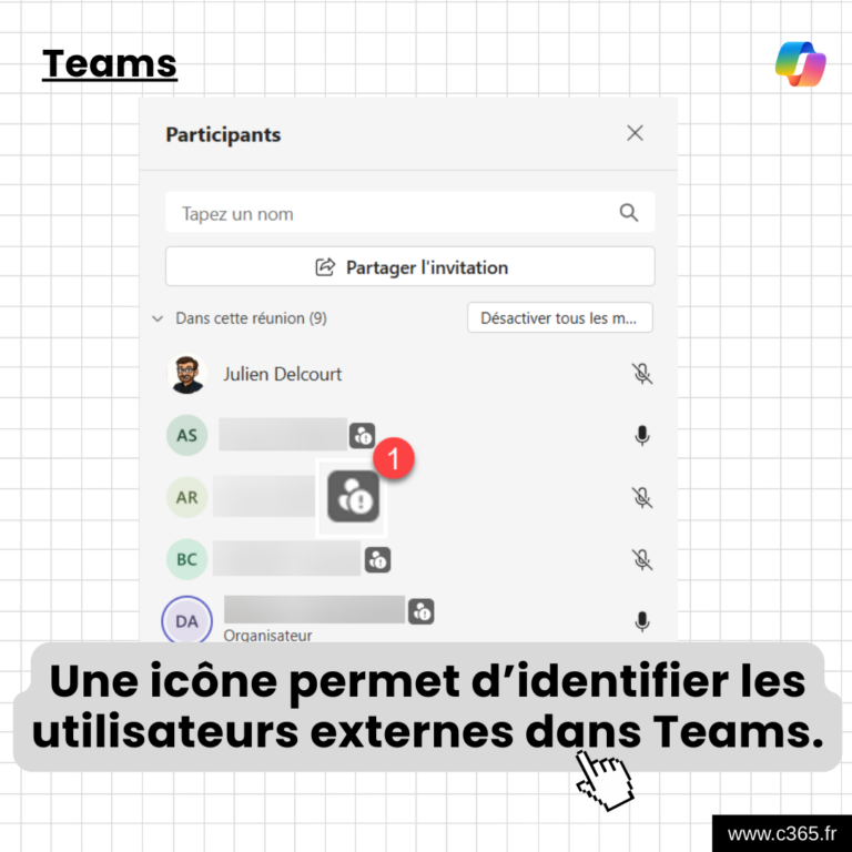 Microsoft Teams affiche désormais une icône spécifique pour identifier les utilisateurs externes lors des réunions et des conversations. 🖼️Image : Microsoft 🔗Plus d’informations :