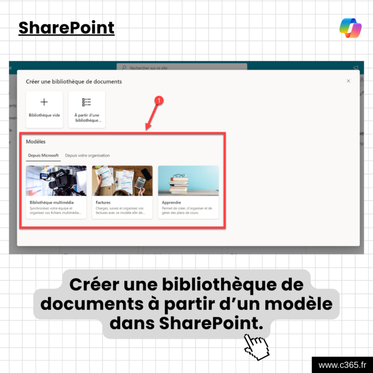 Lors de la création d’une bibliothèque de documents, vous pouvez désormais choisir un modèle plutôt que de partir d’une bibliothèque vide. Chaque modèle intègre les colonnes et les affichages optimisés pour répondre à vos besoins métiers.