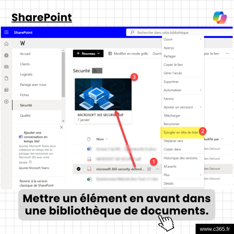 Microsoft introduit une nouvelle fonctionnalité qui permet de mettre en avant un fichier, un dossier ou un lien dans une bibliothèque SharePoint. L’objectif est de rendre un élément important plus visible pour tous les utilisateurs.