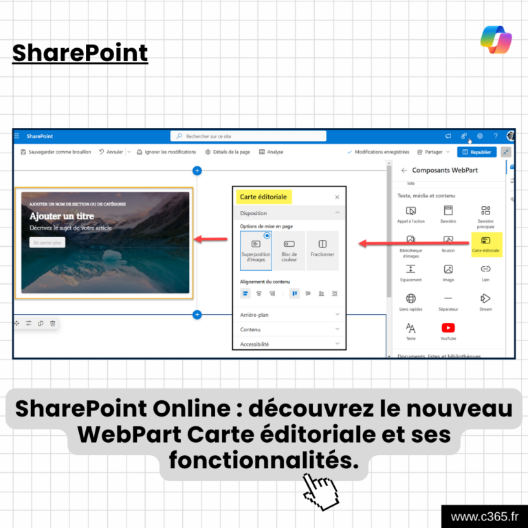 Microsoft introduit le WebPart “Carte éditoriale” dans SharePoint.Il permet de mettre en avant des contenus (pages, actualités, liens) sous forme de cartes visuelles, avec image, titre et description, afin d’améliorer la mise en valeur des informations clés sur vos pages.…