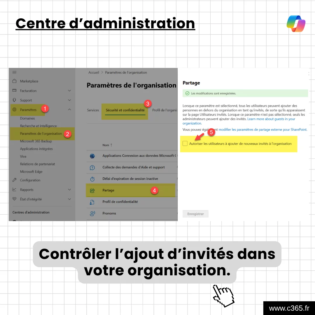 En activant cette option, l’administrateur peut choisir de laisser tous les utilisateurs ajouter de nouveaux invités, de restreindre cette capacité aux seuls administrateurs ou propriétaires de groupes, ou de la désactiver complètement pour renforcer la sécurité.
