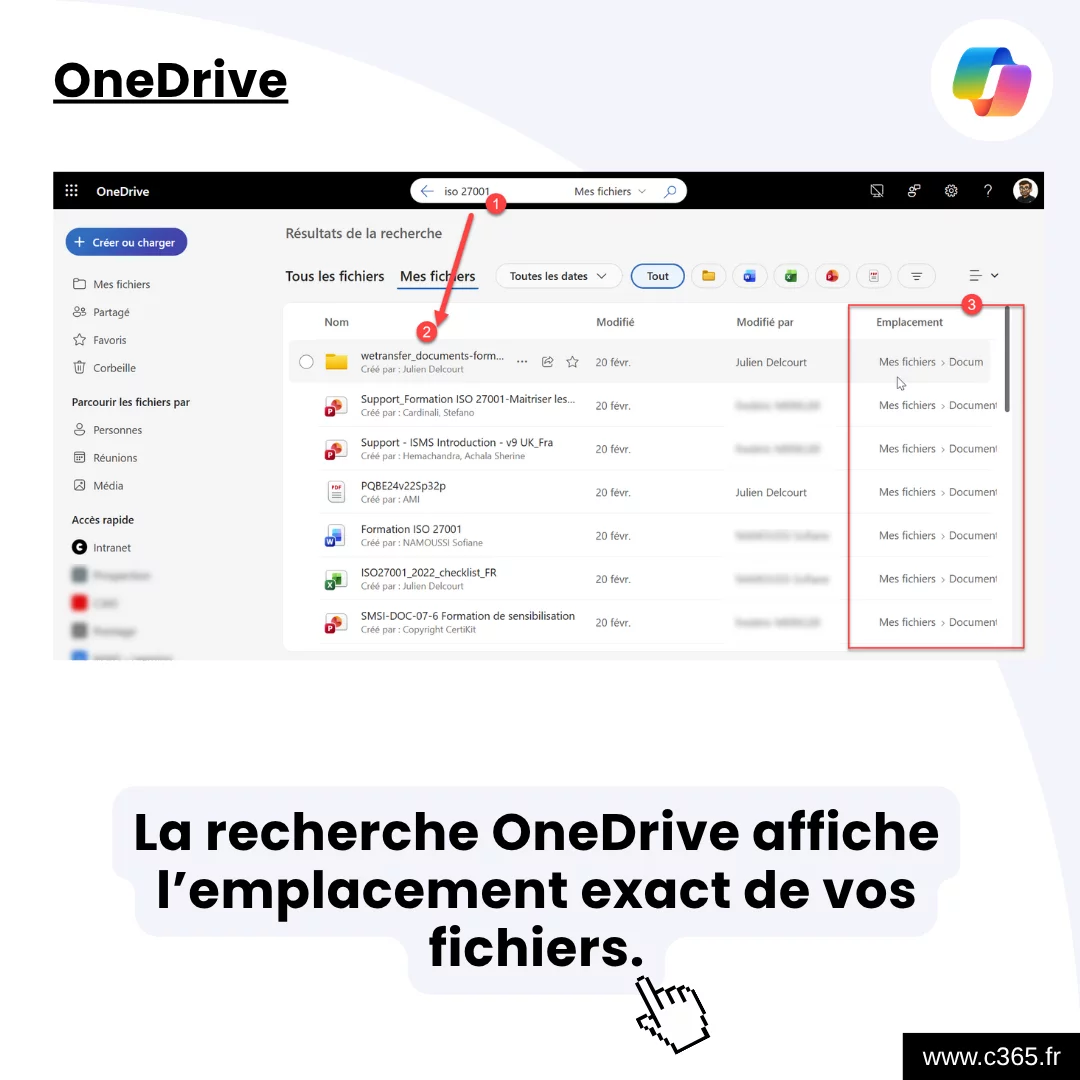La recherche OneDrive affiche l’emplacement exact de vos fichiers.