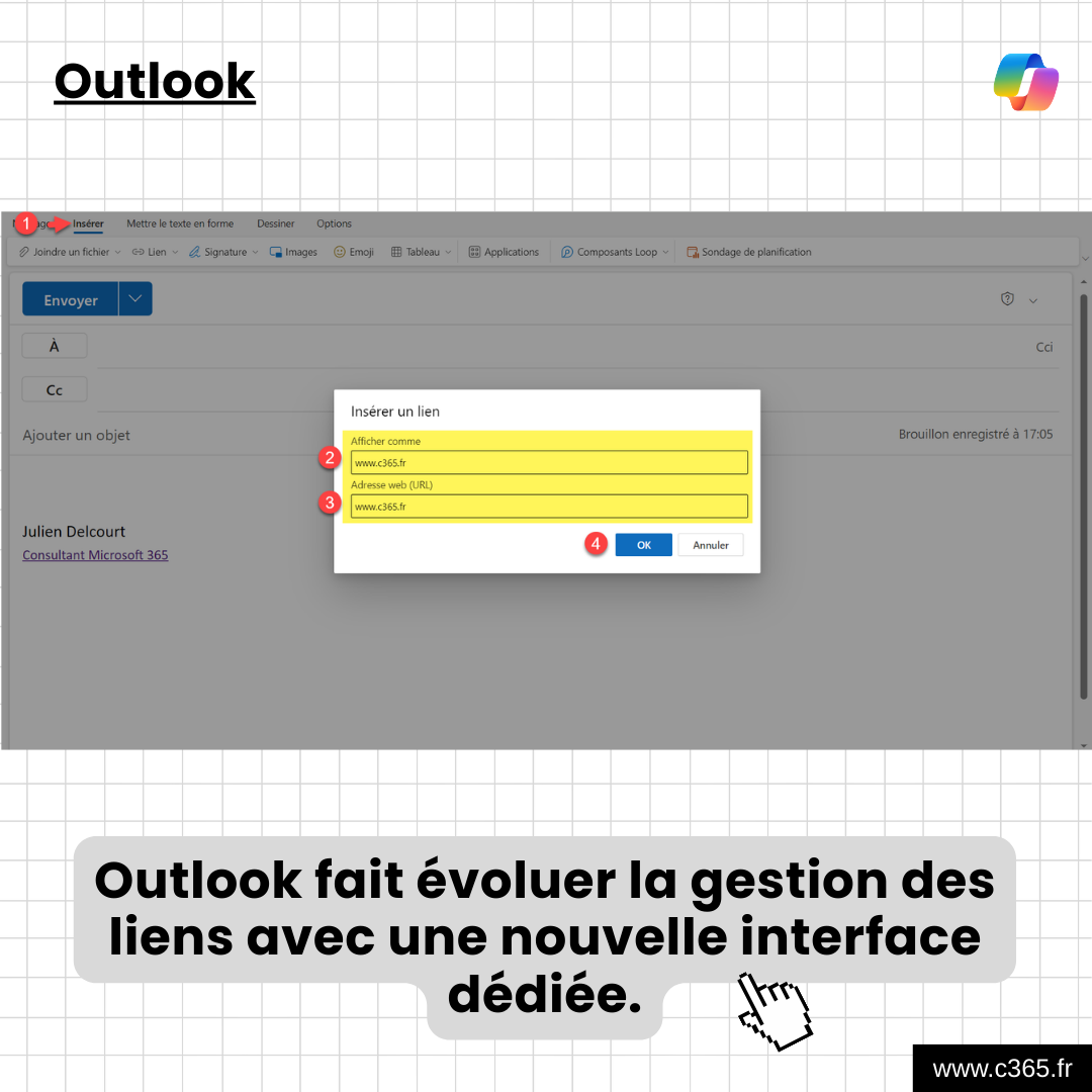 Microsoft Outlook modernise la gestion des liens avec une interface repensée.