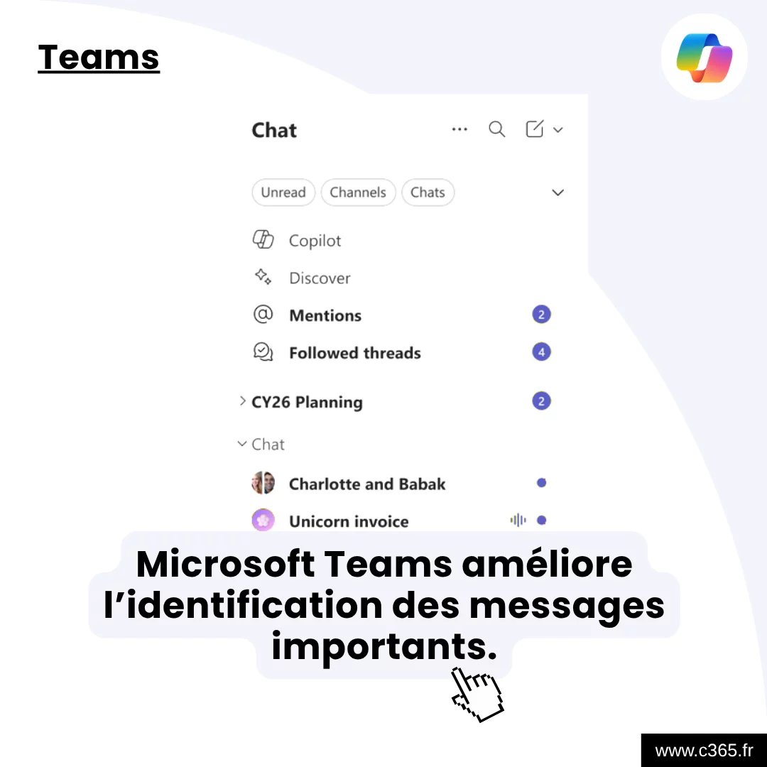 À partir de mi-avril 2026, les badges Microsoft Teams gagneront en lisibilité, en mettant en évidence les conversations non lues, les mentions et les fils suivis.