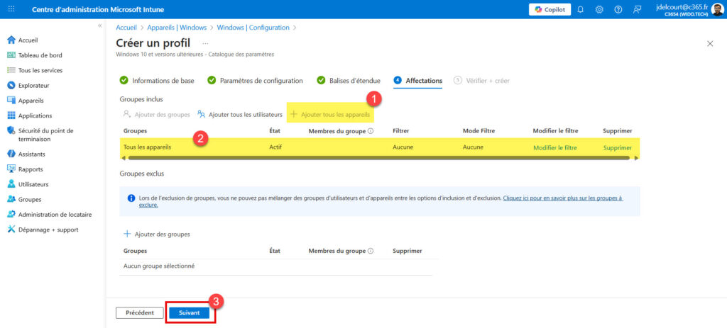 - Cliquez sur Suivant jusqu’à l’onglet Affectations.