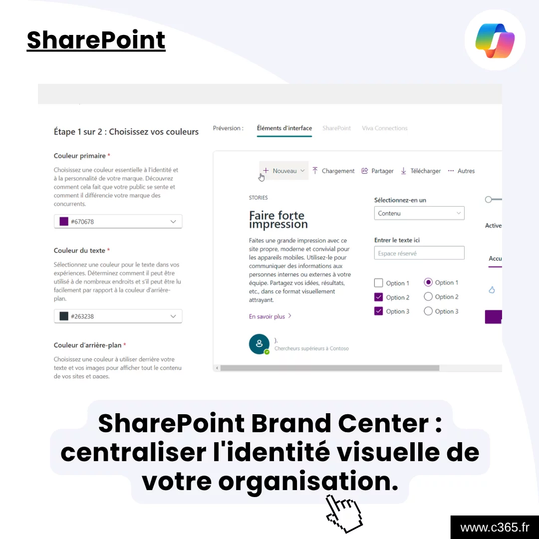 Le SharePoint Brand Center est la nouvelle brique de Microsoft 365 qui permet de centraliser tous les éléments de votre identité visuelle (couleurs, polices, thèmes, etc.) dans un seul et même espace.